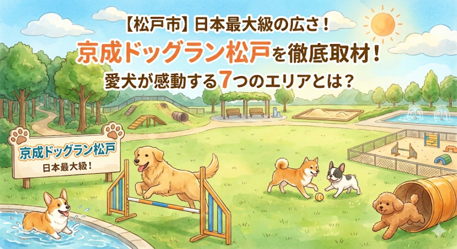今回ご紹介するのは、日本最大級の面積を誇る「京成ドッグラン松戸」です。約13,000㎡(!)という圧倒的なスケールに加え、わんちゃんの性格や大きさに合わせた細やかなエリア分けが魅力のスポット。