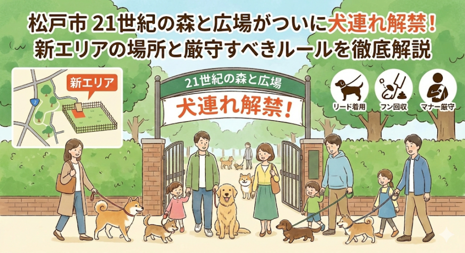 松戸市民のオアシス、「21世紀の森と広場」。東京ドーム約11個分という広大な自然を誇るこの公園ですが、これまで「ワンちゃんのお散歩はNG」だと諦めていませんでしたか?