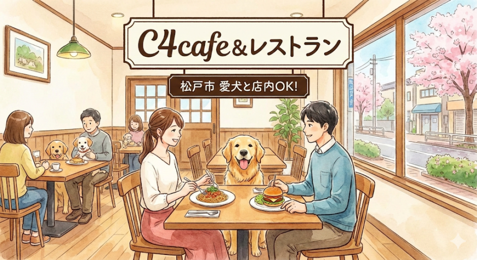 この記事では、千葉県松戸市(新松戸)にある、全席ワンちゃん店内同伴OKの「C4cafe&レストラン」をご紹介します !人間も大満足の本格的な洋食から、ワンちゃんが目を輝かせる専用メニューまで揃った、愛犬家必見のスポットです。