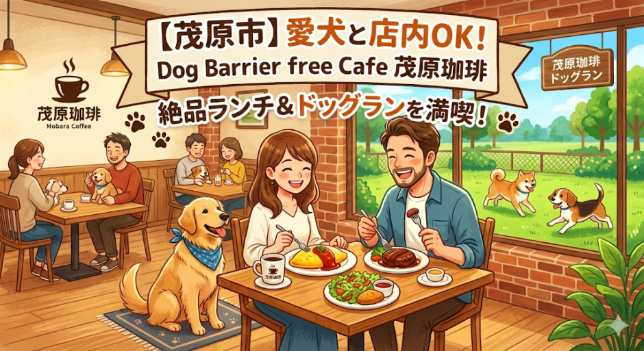 「Dog Barrier free Cafe 茂原珈琲」は、その名の通り「ドッグバリアフリー」をコンセプトにしたお店です 。一般的なドッグカフェとは少し違い、犬を「特別扱い」するのではなく、大切な家族として「一緒にふつうに食事ができる空間」を提供しています 。