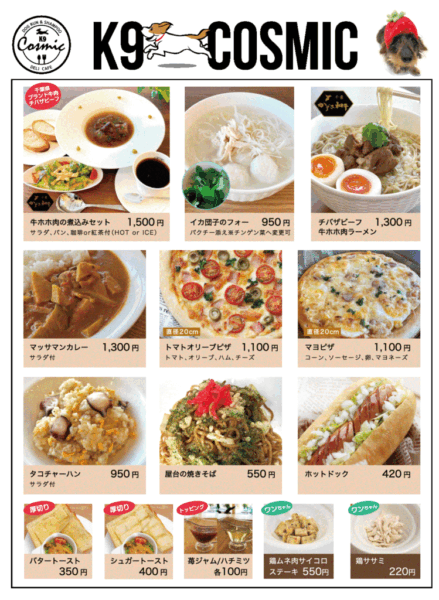 店内はわんちゃん用のメニューもあり、一緒に食事を楽しめるようになっています!