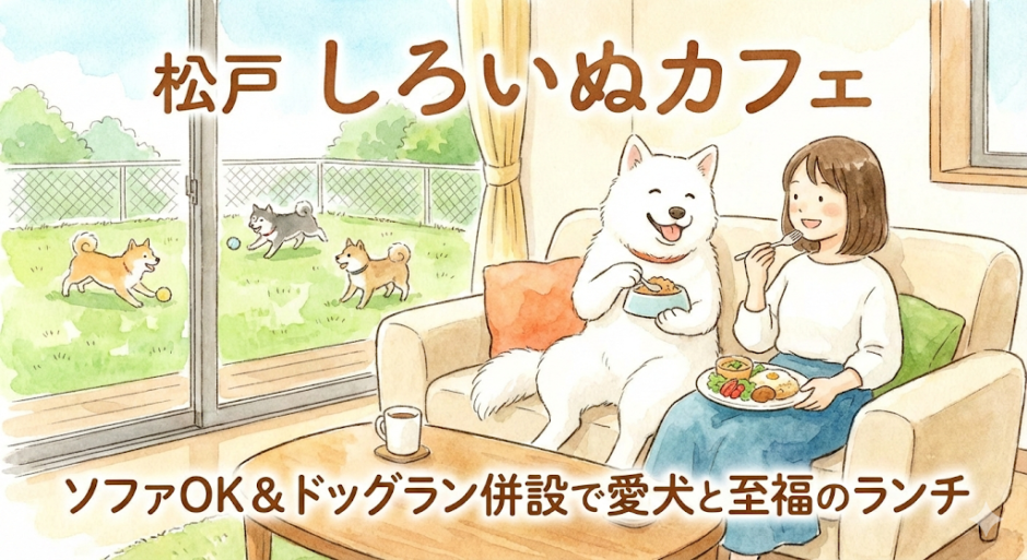 「愛犬と一緒に、まるでおうちにいるようにリラックスして食事を楽しみたい!」そんな飼い主さんの願いを叶えてくれるのが、千葉県松戸市五香にある「しろいぬカフェ」です。