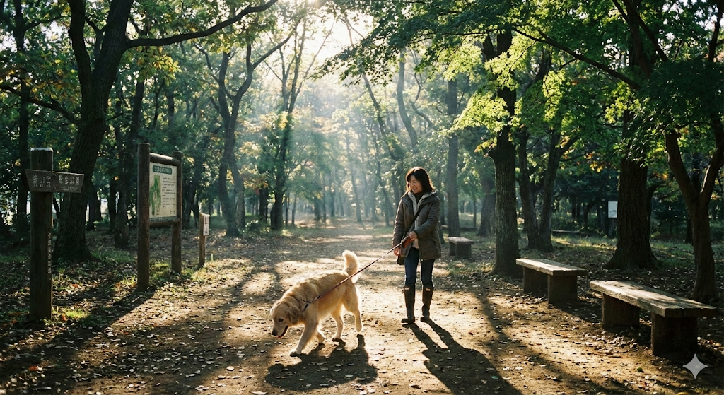 - 虫除け対策は万全に: 「森のまち」だけあって、自然豊かな公園には夏場、蚊やマダニがいることも。フロントライン等の予防に加え、犬用の虫除けスプレーを持参しましょう。