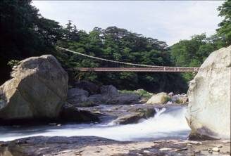 - ここがポイント: 箒川(ほうきがわ)にかかる大きな吊橋。ワンちゃんも一緒に渡れます。